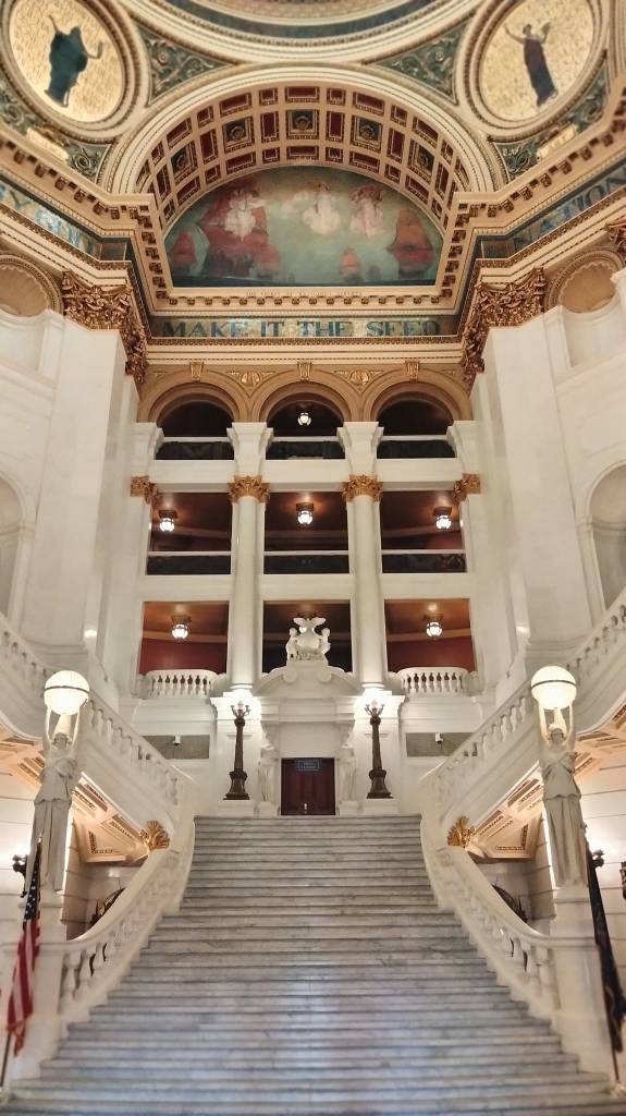 The picture is where we are filming our ballroom scene. There are no words to adequately describe just how magnificent this building is. You just have to see it in person and see for yourself. http://www.pacapitol.com/book-a-tour/#step-1.