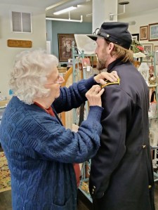 I remember when we walked into the dress shop where Eileen was the manager at. I knew absolutely nothing about Civil War attire and, it is written about in the first book. But from day one, Eileen took me under her wing. She is also the reason for Summer Ray’s last name of Sherwood. I immortalized her. I never thought we would lose her before the pilot was released. But unfortunately we have. The world has and it is a huge loss, especially to her family and to those who knew how kind and how special she was. I went from the above picture to knowing nothing, to learning how to hold my head up, where to “cast my eyes” and how to walk like a lady. The picture below is the book cover to the first book that she is part of. It’s the dress she fitted me for in the above picture!