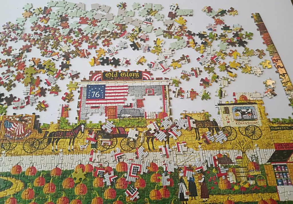 At first, I was very enthusiastic about it. I thought, “It can’t be that hard.” It has been a challenge to say the least, and why it is taking me so long to finish it. I lost my motivation. It is defined as, “the reason or reasons one has for acting or behaving in a particular way.” I like the picture and with the 250th anniversary of America coming up, I thought it would be nice in a frame. But I lost my motivation. Then one afternoon, when I sat down to crochet, I realized I didn’t have the color yarn I needed. So, I looked up at the puzzle sitting on the shelf and I started working on it again. I felt exactly the same – zero motivation. I didn’t even want to do it. I just needed to feel productive. One piece, led to another, and then another, and so on. Somehow along the way, I started to get my energy back for it. It is still a pain trying to get it done. But the point is, I found my encouragement to keep working on it.